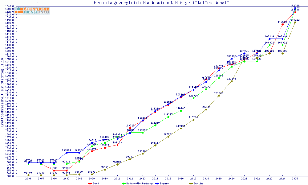 | Besoldungsvergleich B 6 im Jahr 2025 | gemitteltes Gehalt | ||||||