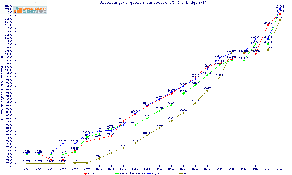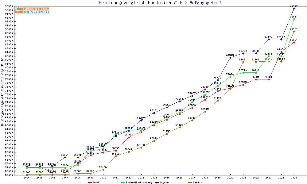 | Besoldungsvergleich R 2 im Jahr 2025 | Anfangsgehalt | ||||||