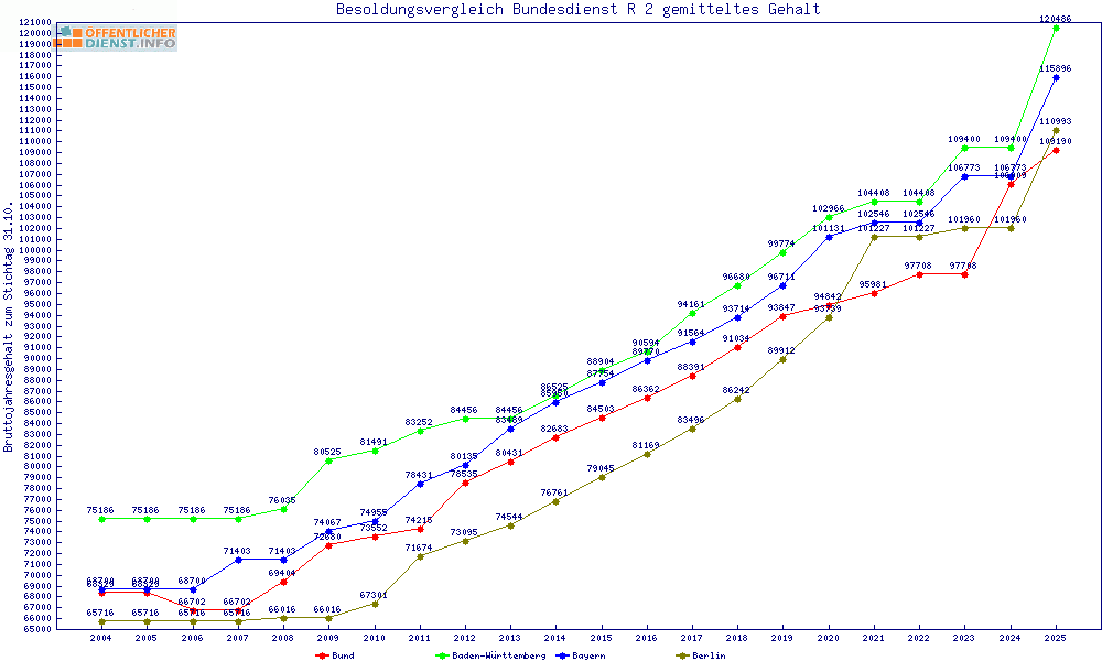 | Besoldungsvergleich R 2 im Jahr 2025 | gemitteltes Gehalt | ||||||