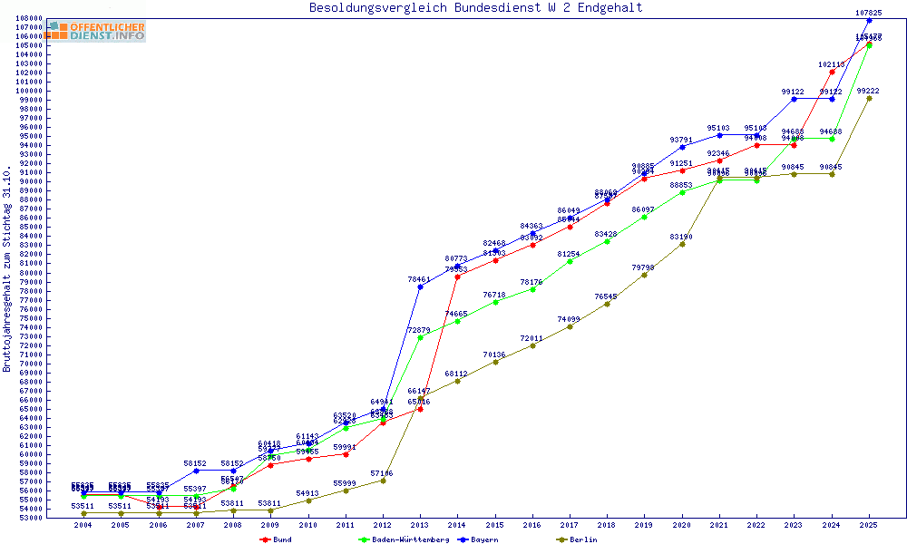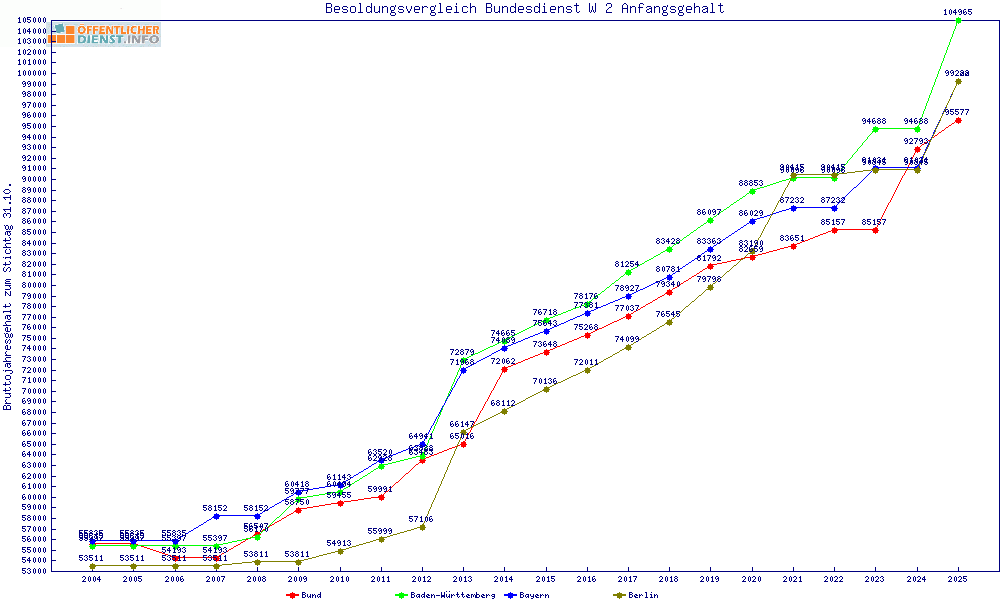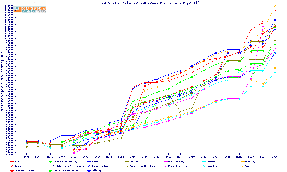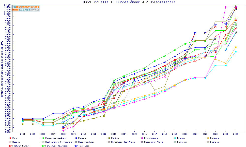 | Besoldungsvergleich W 2 im Jahr 2025 | Anfangsgehalt | ||||||