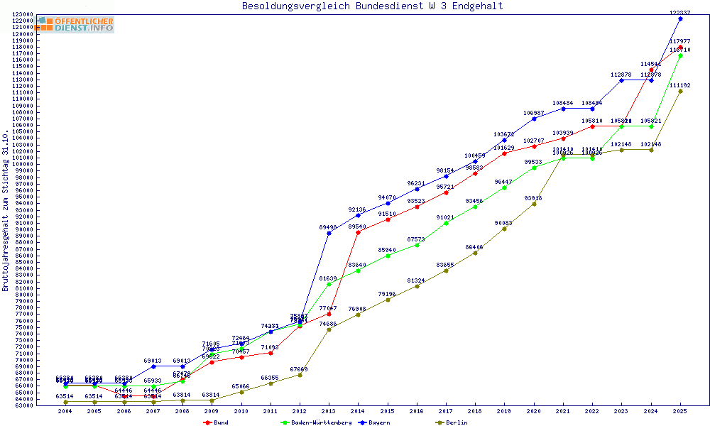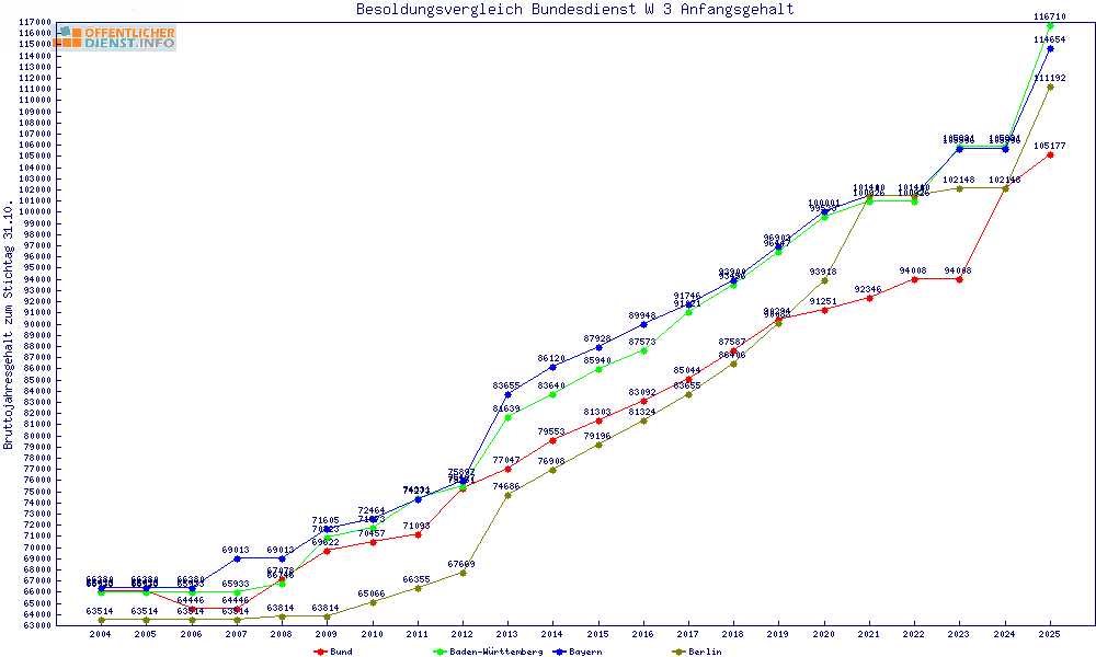 | Besoldungsvergleich W 3 im Jahr 2025 | Anfangsgehalt | ||||||