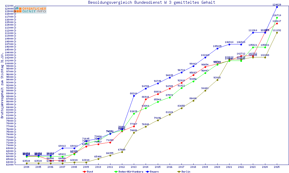 | Besoldungsvergleich W 3 im Jahr 2025 | gemitteltes Gehalt | ||||||
