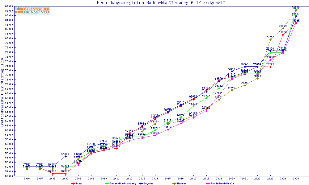| Besoldungsvergleich A 12 im Jahr 2025 | Anfangsgehalt | ||||||
