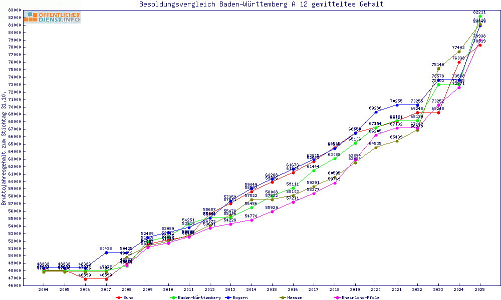 | Besoldungsvergleich A 12 im Jahr 2025 | gemitteltes Gehalt | ||||||