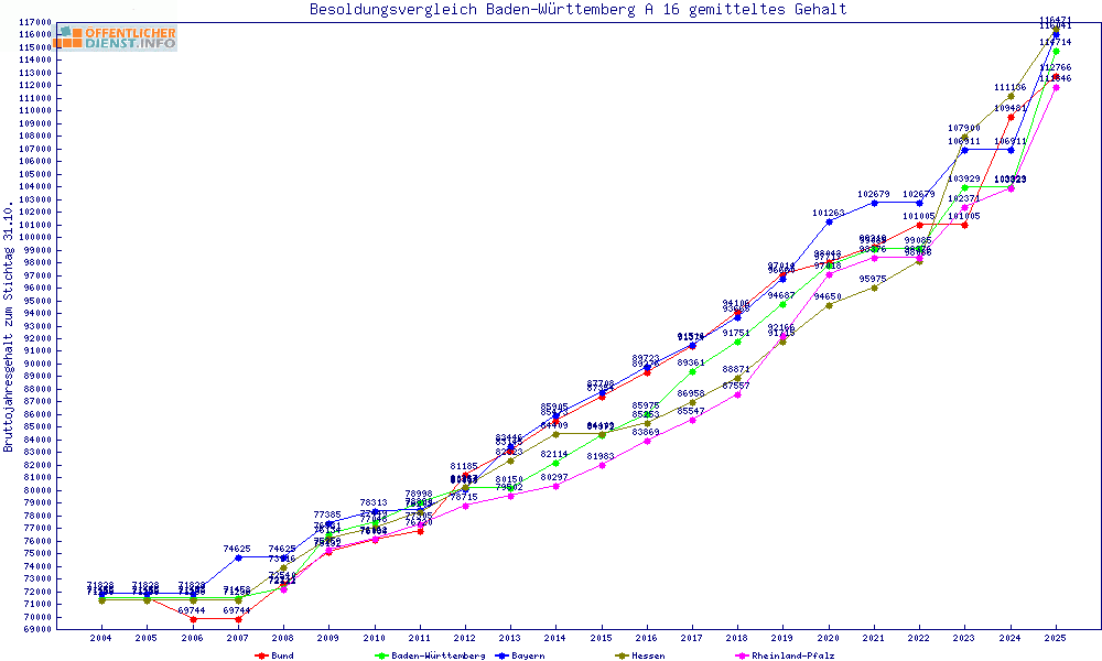 | Besoldungsvergleich A 16 im Jahr 2025 | gemitteltes Gehalt | ||||||