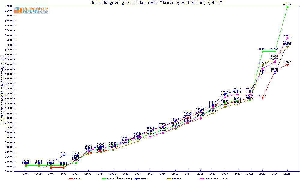 | Besoldungsvergleich A 8 im Jahr 2025 | Anfangsgehalt | ||||||