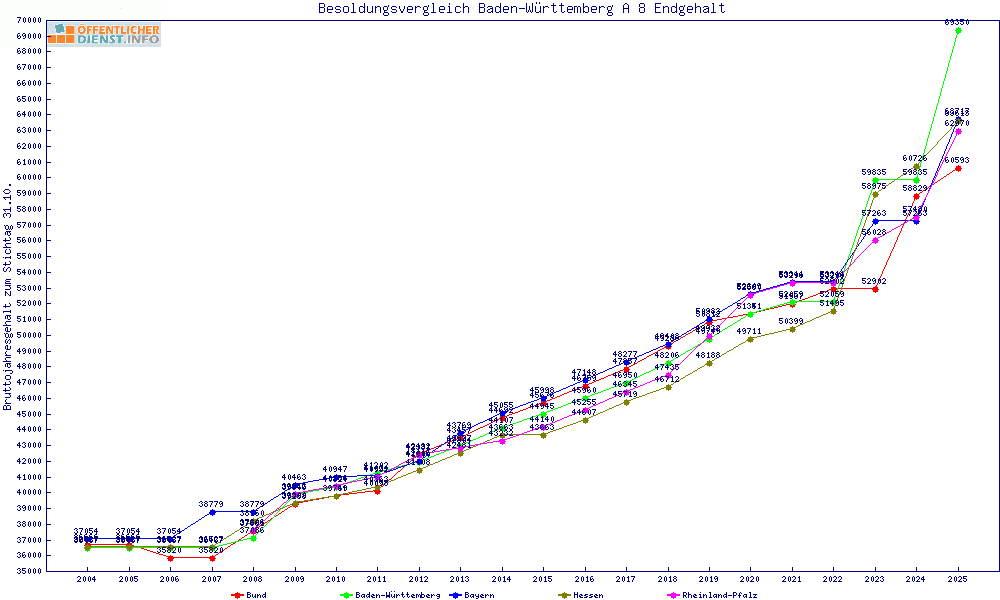 | Besoldungsvergleich A 8 im Jahr 2025 | Endgehalt | |||||||
