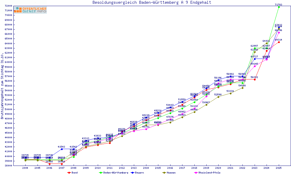 | Baden-Württemberg | 71.784 € | +4319 € | +6.4% | 26 Jahre | ||||
