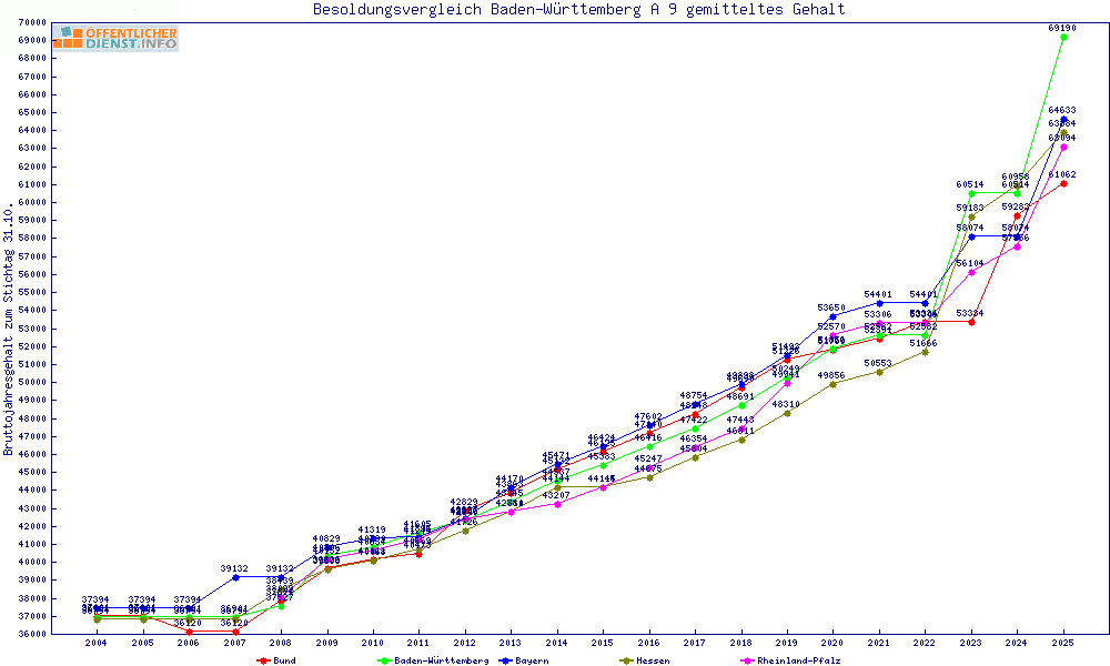 | Besoldungsvergleich A 9 im Jahr 2025 | gemitteltes Gehalt | ||||||