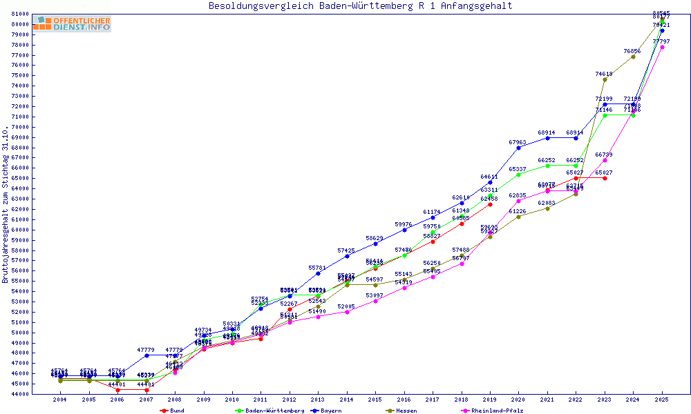 | Besoldungsvergleich R 1 im Jahr 2025 | Anfangsgehalt | ||||||
