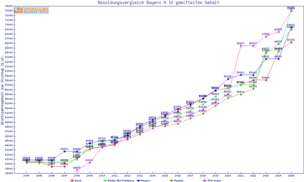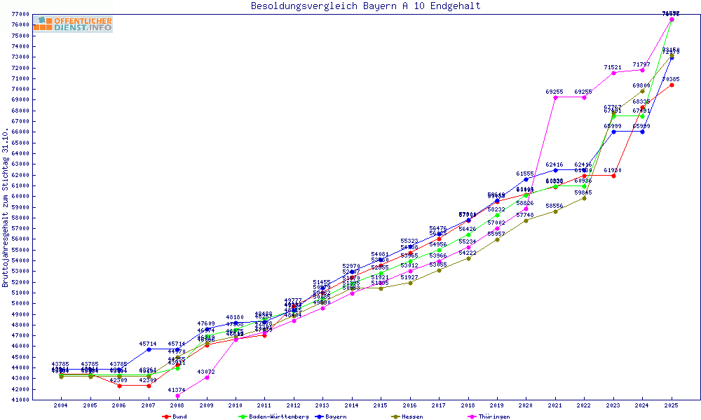 | Besoldungsvergleich A 10 im Jahr 2025 | gemitteltes Gehalt | ||||||