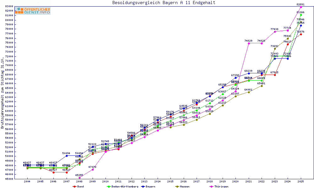 | Besoldungsvergleich A 11 im Jahr 2025 | Anfangsgehalt | ||||||