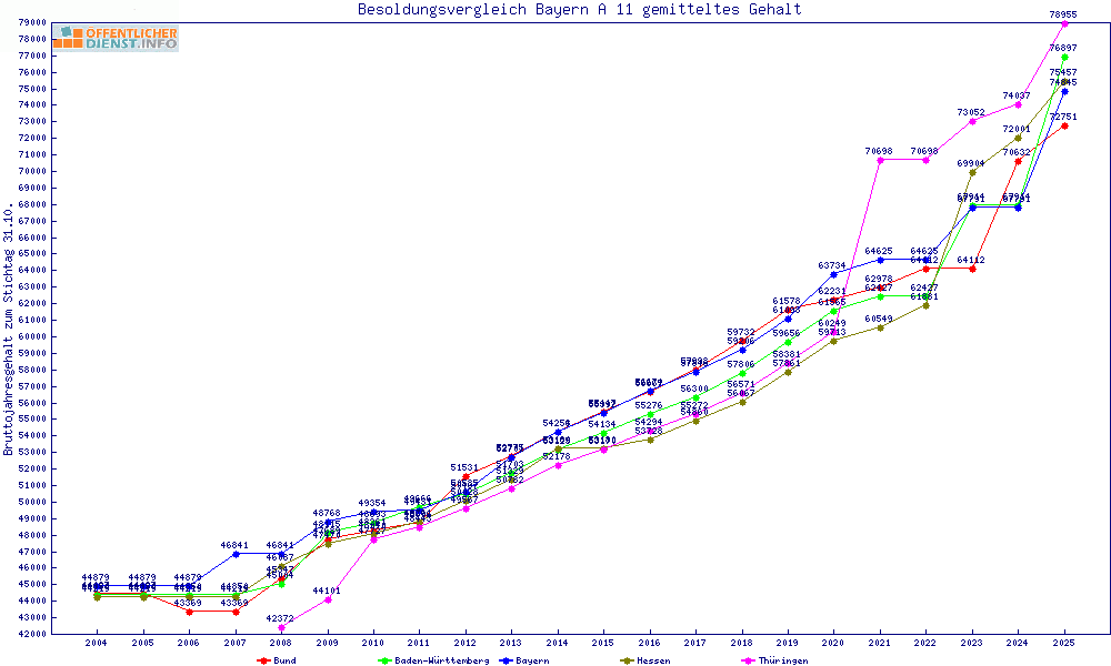 | Besoldungsvergleich A 11 im Jahr 2025 | gemitteltes Gehalt | ||||||