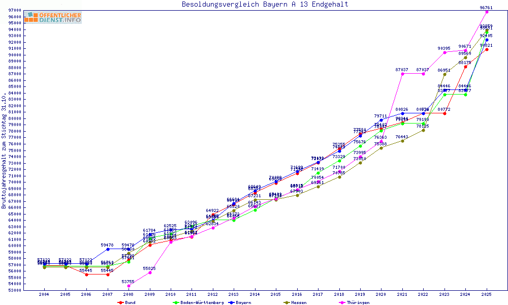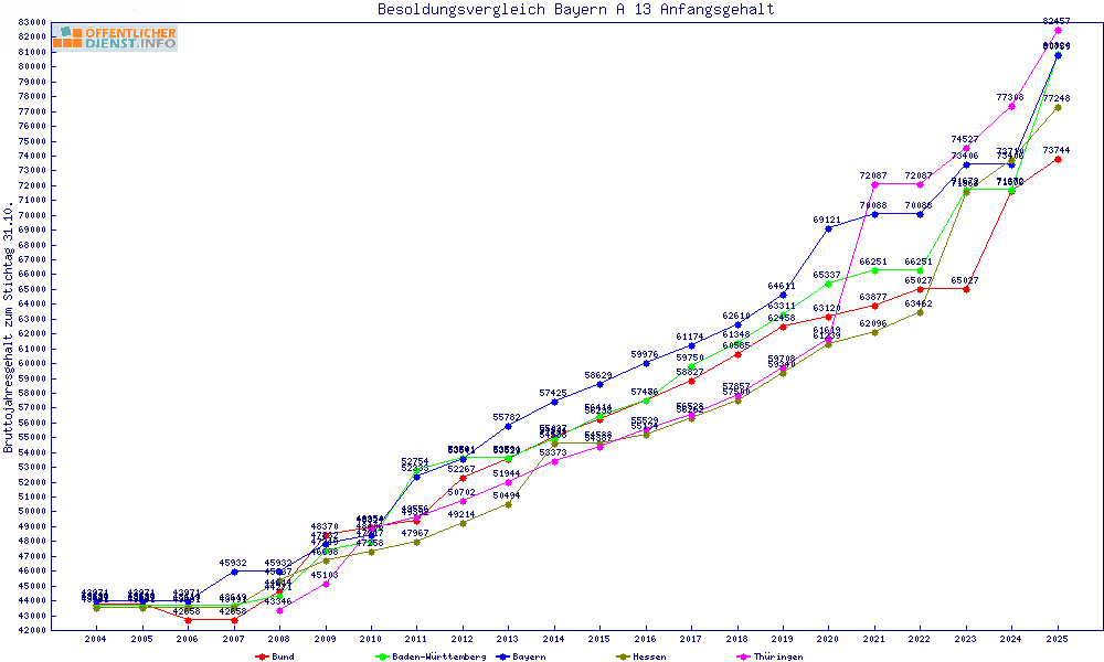 | Besoldungsvergleich A 13 im Jahr 2025 | Anfangsgehalt | ||||||