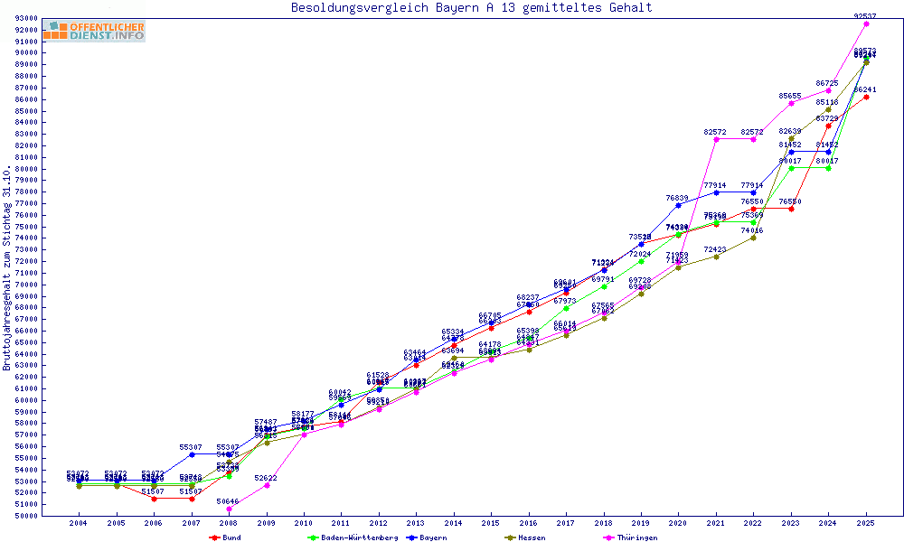 | Besoldungsvergleich A 13 im Jahr 2025 | gemitteltes Gehalt | ||||||