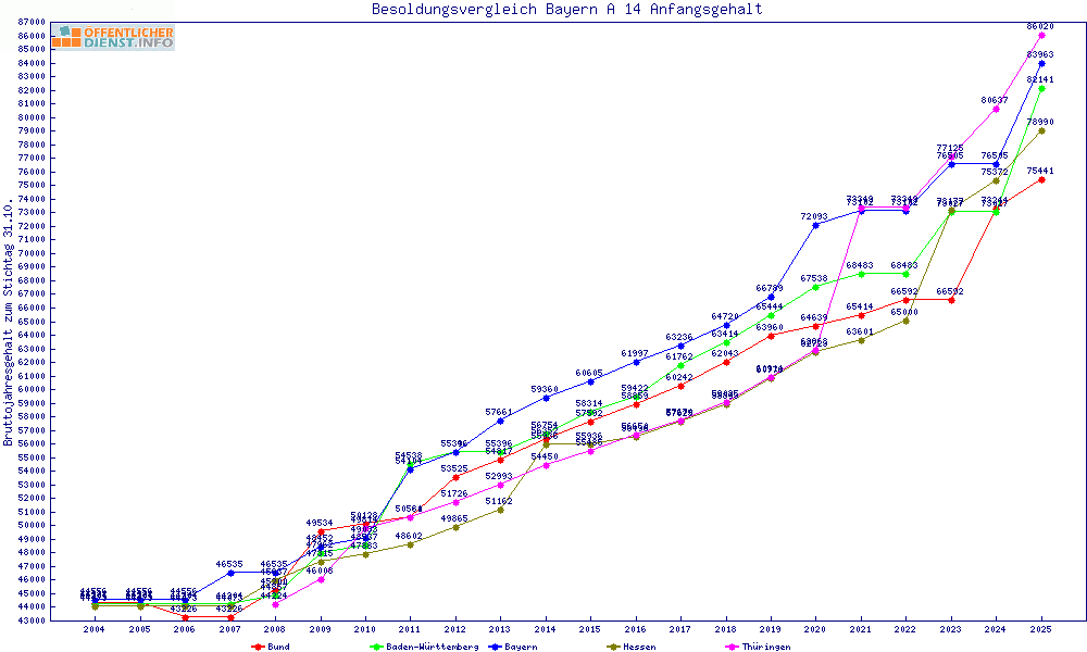 | Besoldungsvergleich A 14 im Jahr 2025 | Anfangsgehalt | ||||||