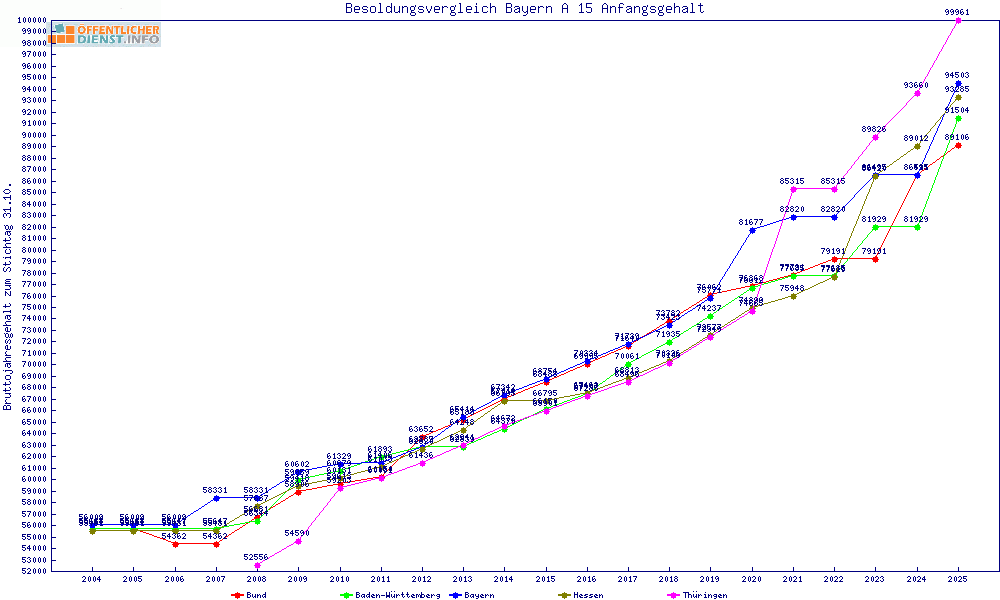 | Besoldungsvergleich A 15 im Jahr 2025 | Anfangsgehalt | ||||||