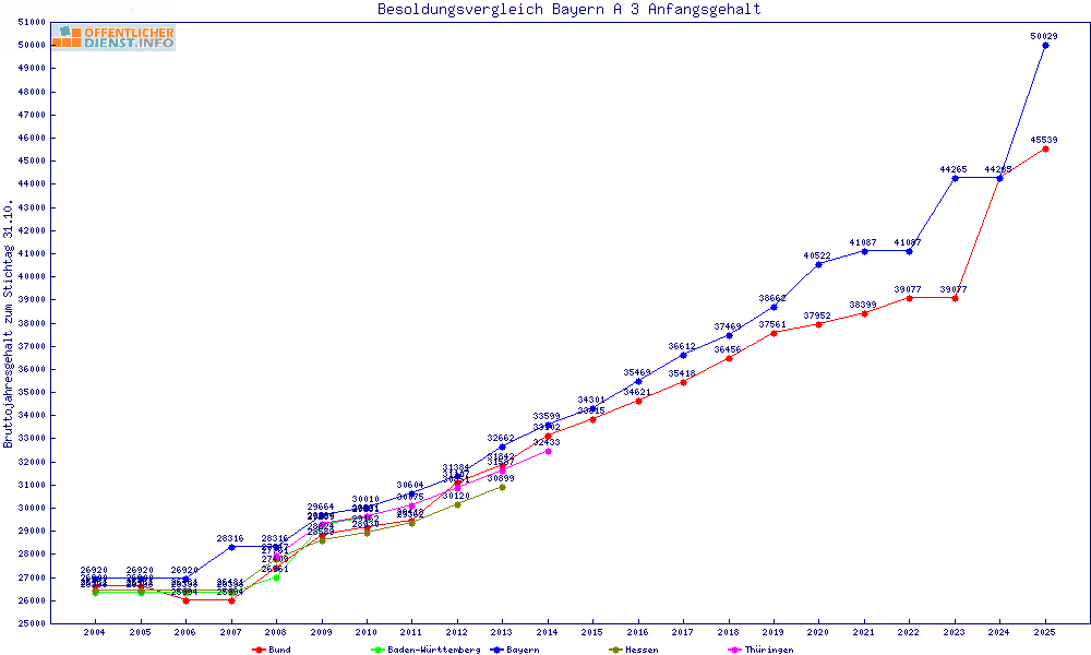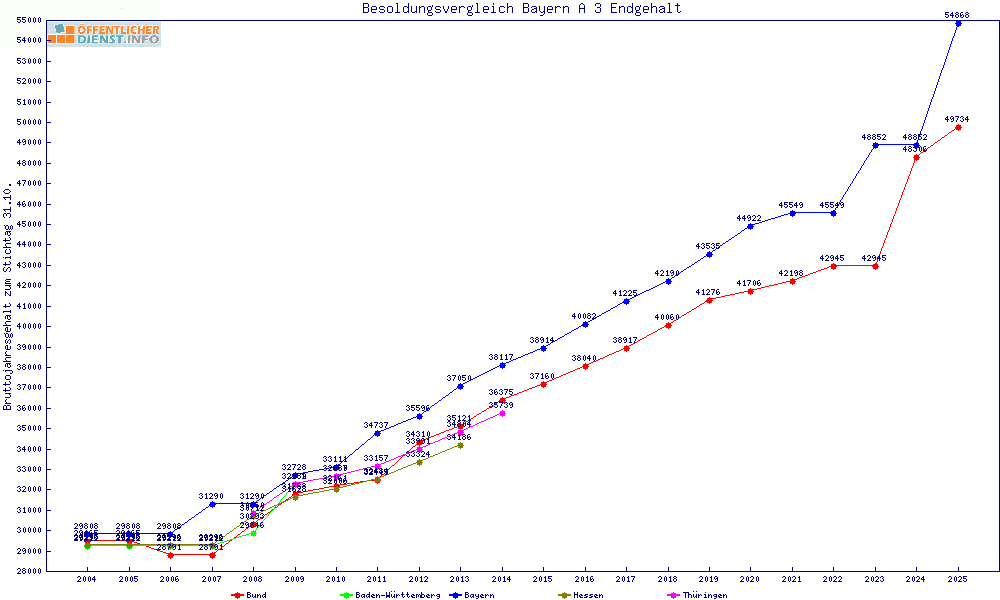 | Besoldungsvergleich A 3 im Jahr 2025 | gemitteltes Gehalt | ||||||