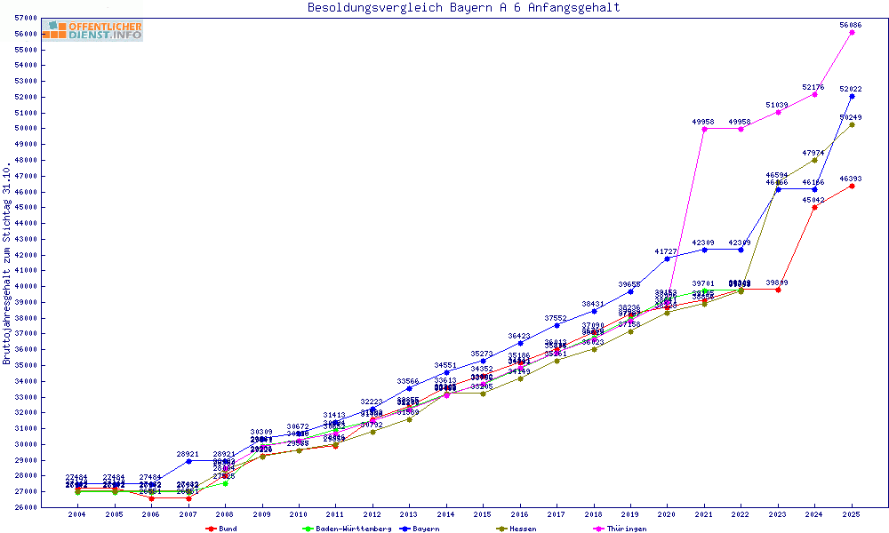 | Besoldungsvergleich A 6 im Jahr 2025 | Anfangsgehalt | ||||||