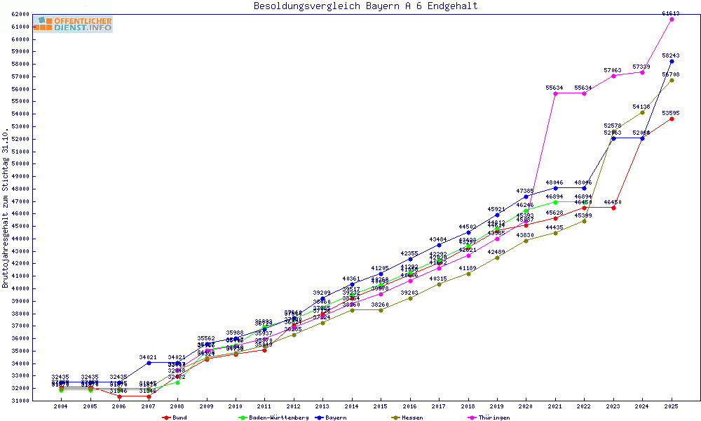 | Besoldungsvergleich A 6 im Jahr 2025 | Endgehalt | |||||||