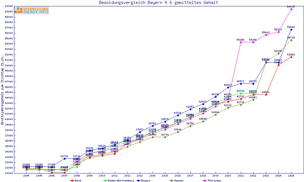 | Besoldungsvergleich A 6 im Jahr 2025 | gemitteltes Gehalt | ||||||
