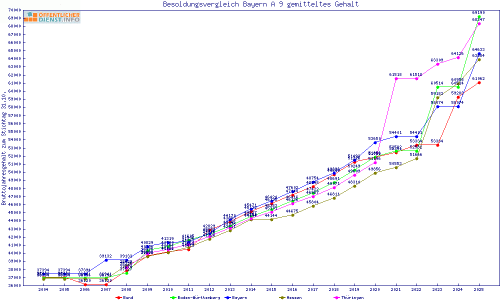 | Besoldungsvergleich A 9 im Jahr 2025 | gemitteltes Gehalt | ||||||