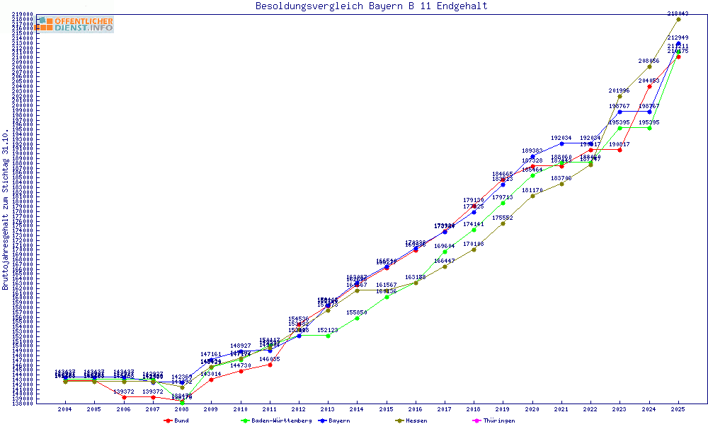 | Besoldungsvergleich B 11 im Jahr 2025 | gemitteltes Gehalt | ||||||
