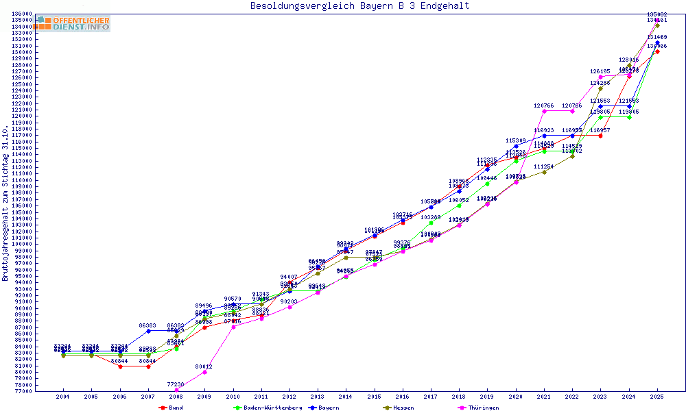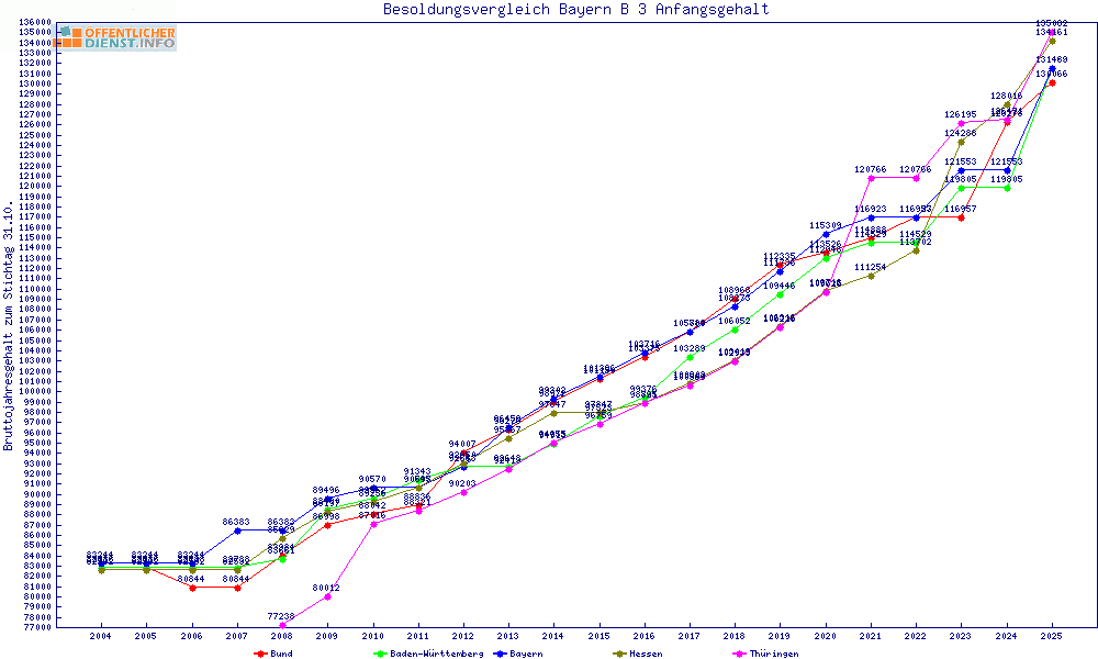 | Besoldungsvergleich B 3 im Jahr 2025 | gemitteltes Gehalt | ||||||