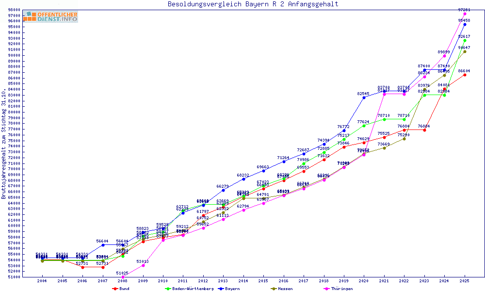 | Besoldungsvergleich R 2 im Jahr 2025 | Anfangsgehalt | ||||||