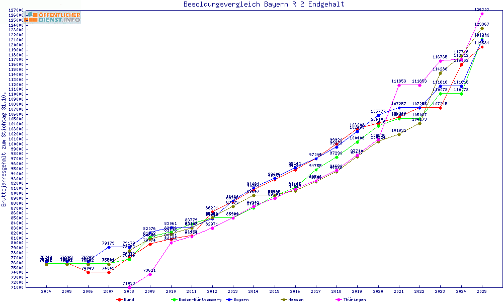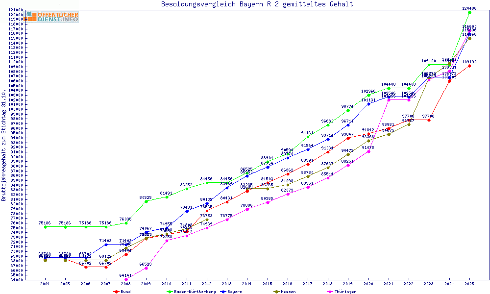 | Besoldungsvergleich R 2 im Jahr 2025 | gemitteltes Gehalt | ||||||