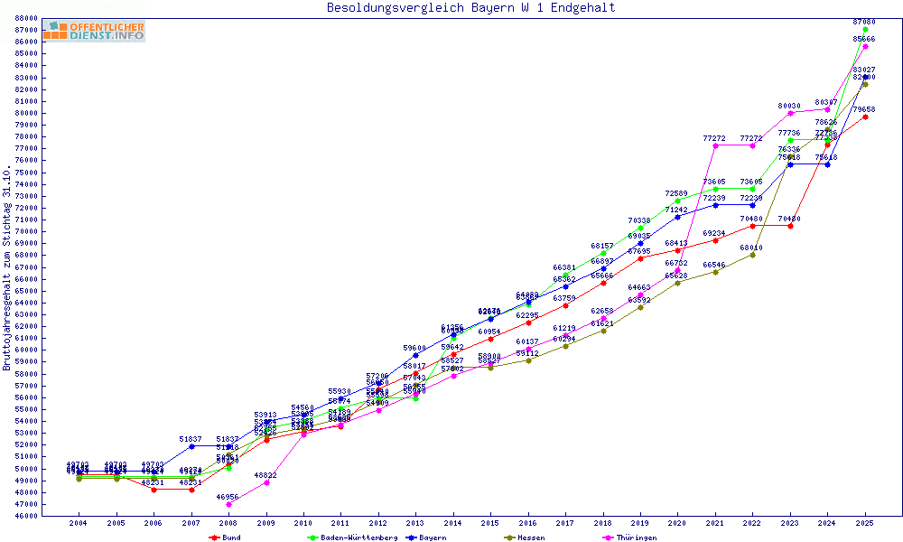 | Besoldungsvergleich W 1 im Jahr 2025 | Anfangsgehalt | ||||||