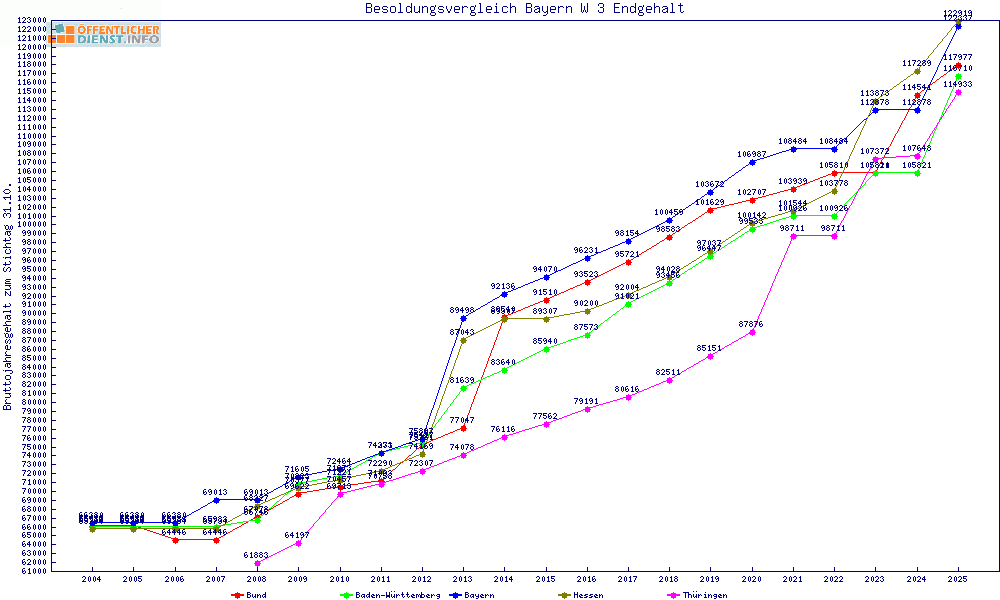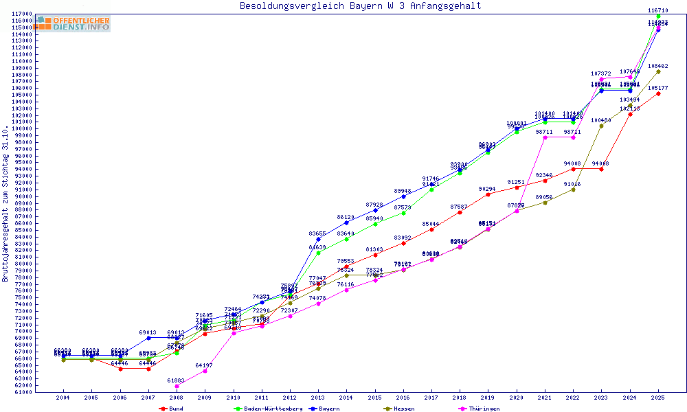 | Besoldungsvergleich W 3 im Jahr 2025 | Anfangsgehalt | ||||||