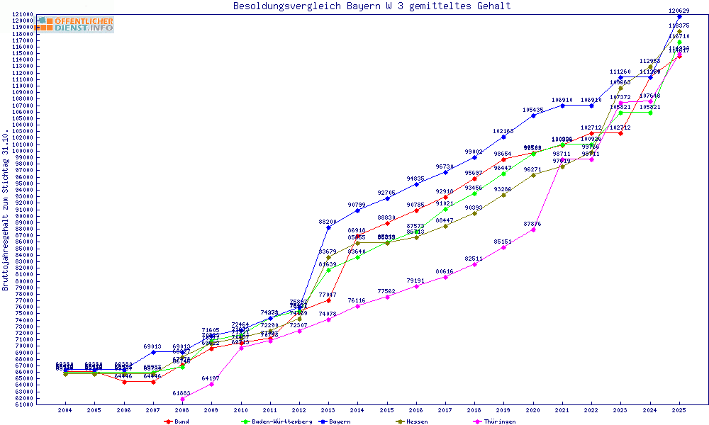 | Besoldungsvergleich W 3 im Jahr 2025 | gemitteltes Gehalt | ||||||