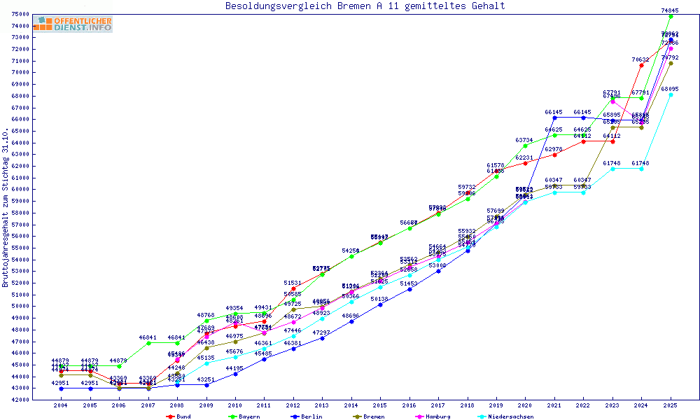 | Besoldungsvergleich A 11 im Jahr 2025 | gemitteltes Gehalt | ||||||