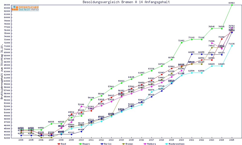 | Besoldungsvergleich A 14 im Jahr 2025 | Anfangsgehalt | ||||||