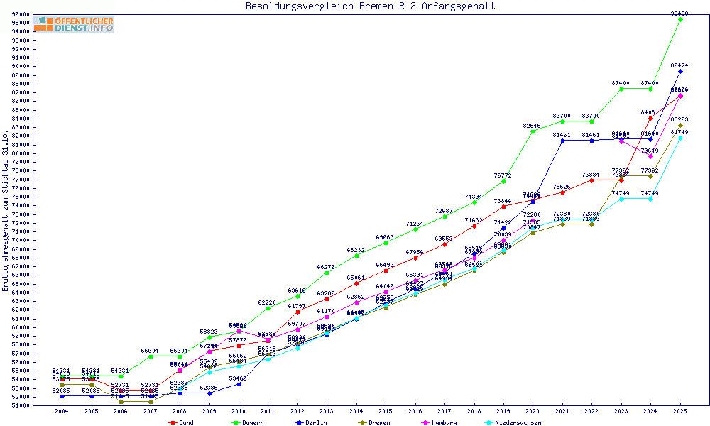 | Jahresgehalt brutto | im Vergleich mit Bremen |