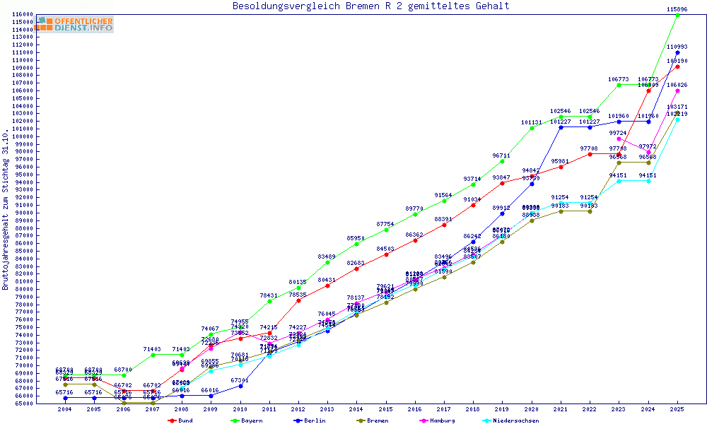| Besoldungsvergleich R 2 im Jahr 2025 | gemitteltes Gehalt | ||||||