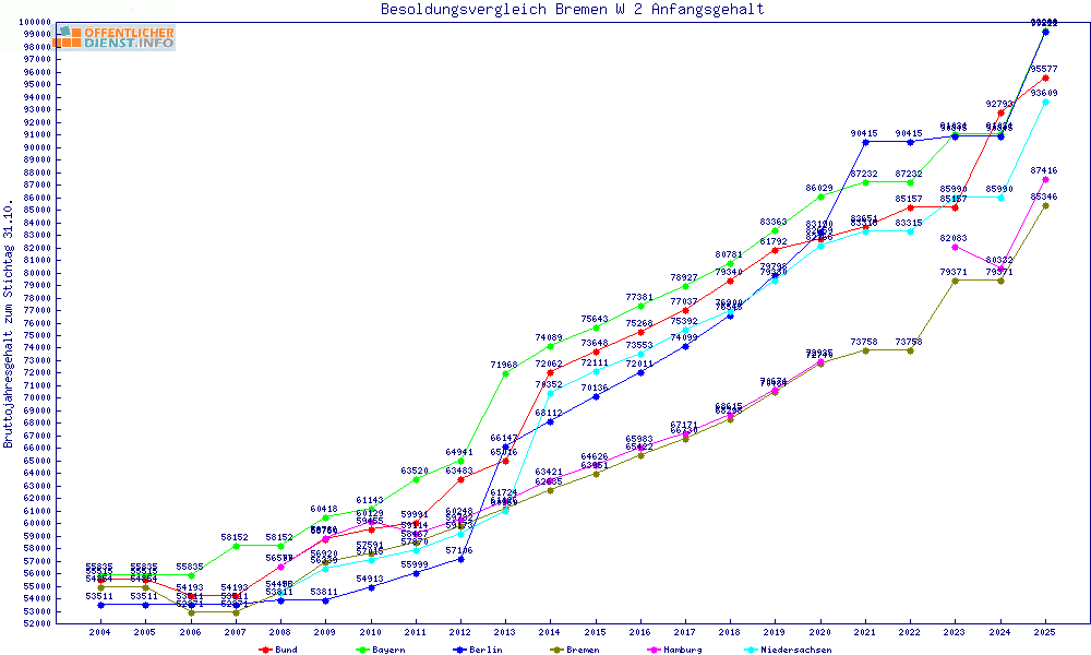 | Jahresgehalt brutto | im Vergleich mit Bremen |