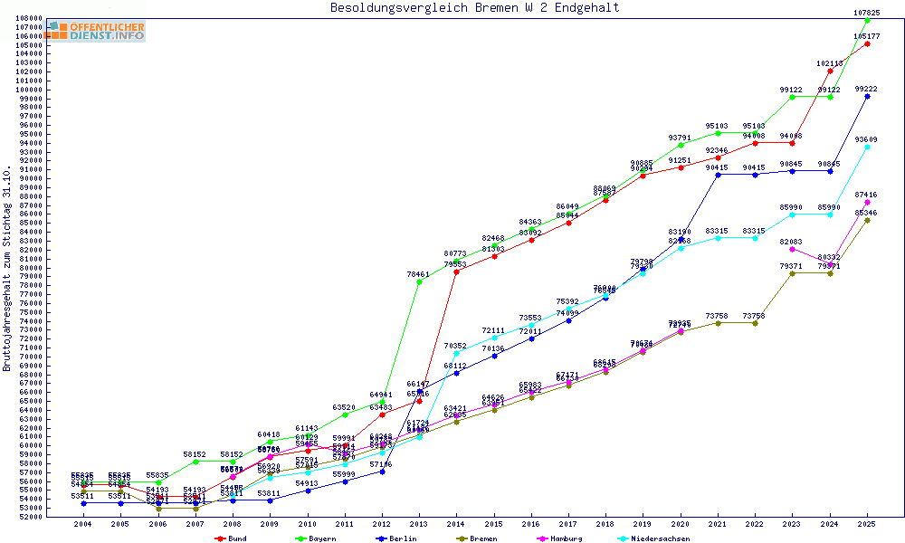| Besoldungsvergleich W 2 im Jahr 2025 | Anfangsgehalt | ||||||