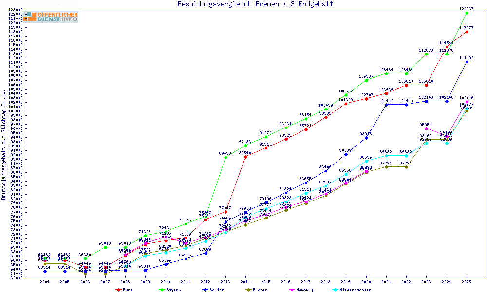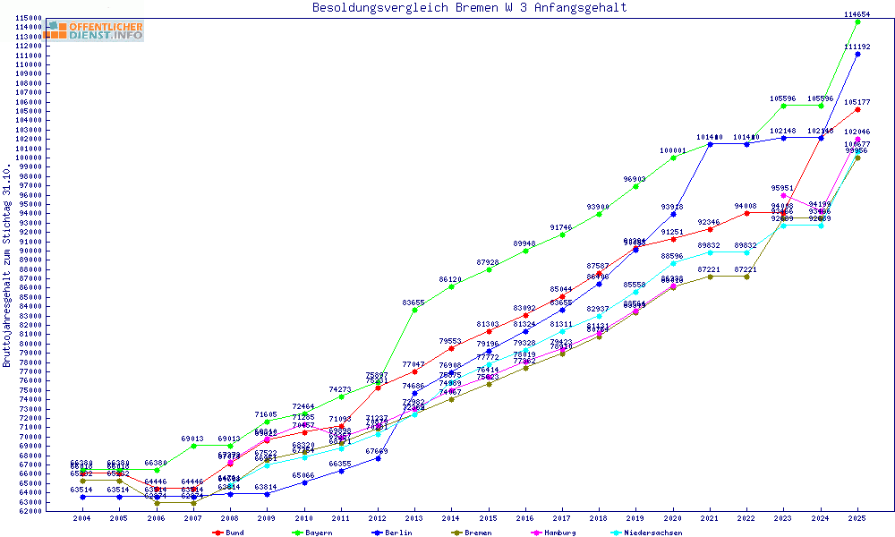 | Besoldungsvergleich W 3 im Jahr 2025 | Anfangsgehalt | ||||||
