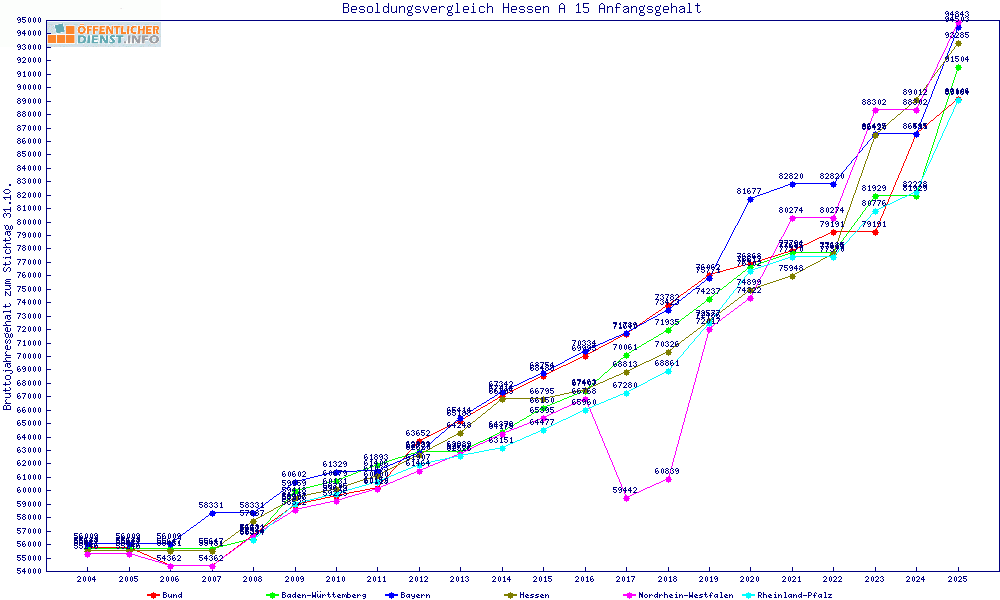 | Besoldungsvergleich A 15 im Jahr 2025 | Anfangsgehalt | ||||||