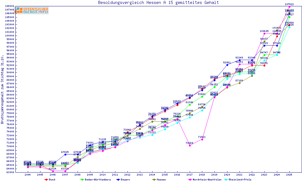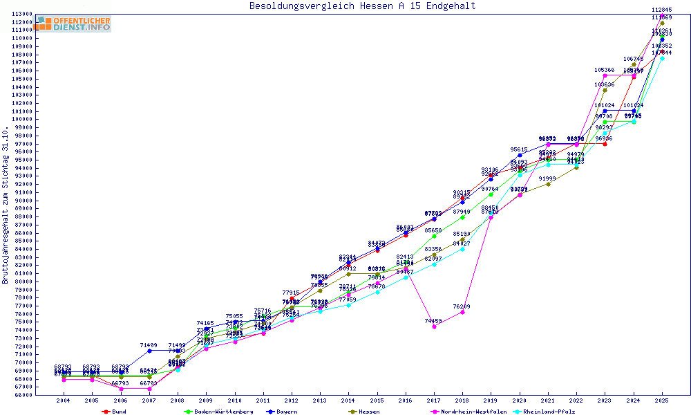 | Besoldungsvergleich A 15 im Jahr 2025 | gemitteltes Gehalt | ||||||
