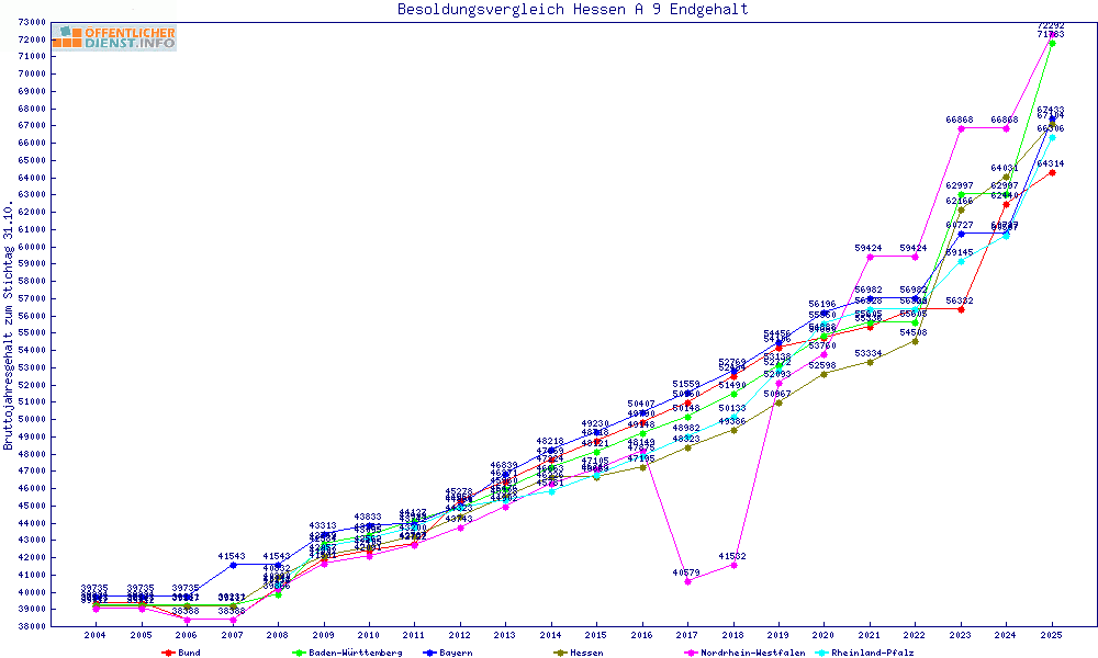 | Besoldungsvergleich A 9 im Jahr 2025 | Anfangsgehalt | ||||||