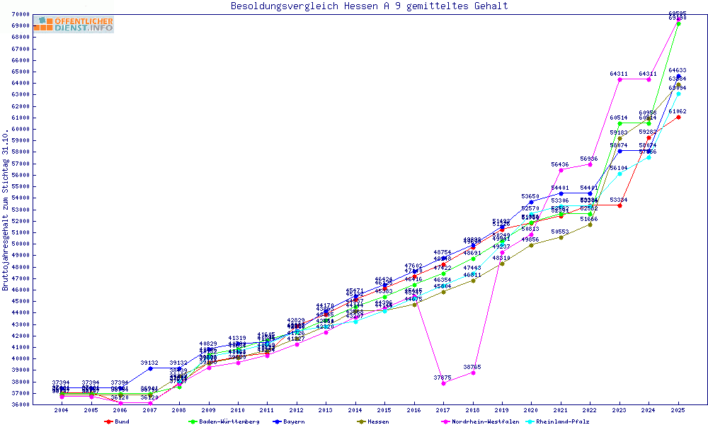 | Besoldungsvergleich A 9 im Jahr 2025 | gemitteltes Gehalt | ||||||