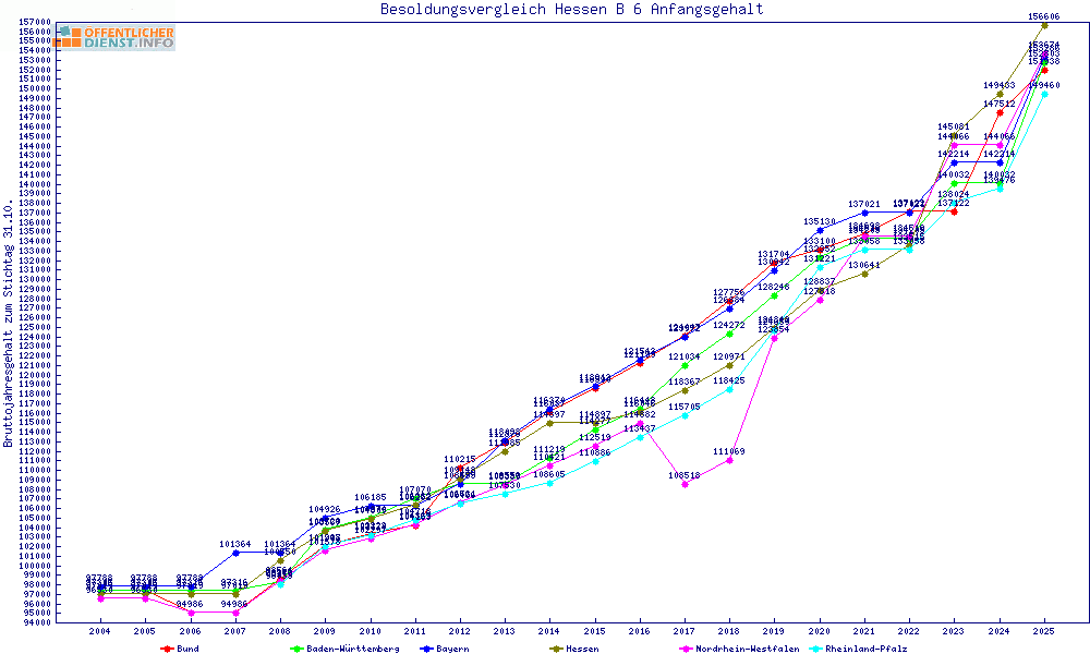 | Besoldungsvergleich B 6 im Jahr 2025 | Anfangsgehalt | ||||||