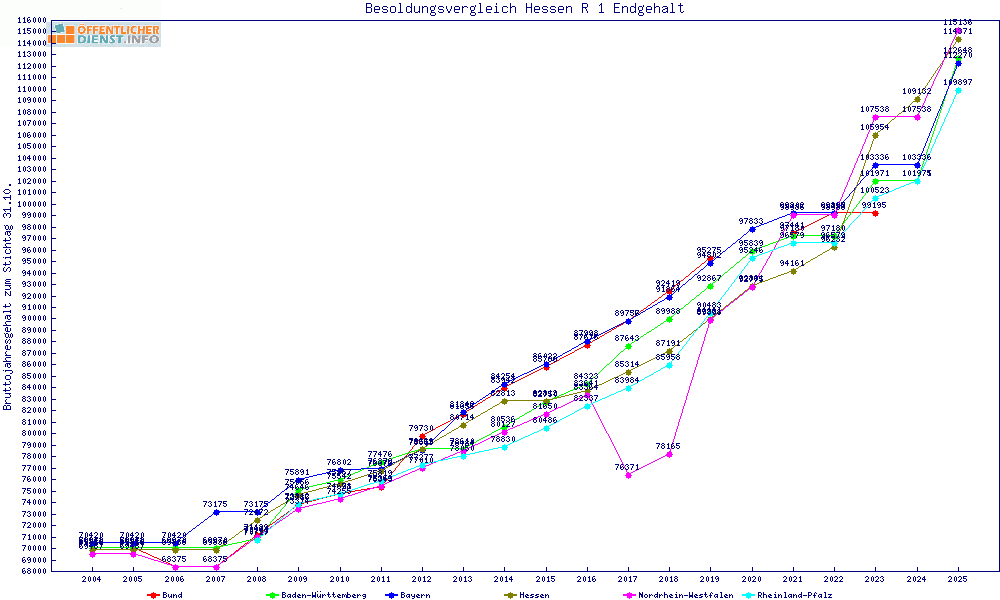 | Besoldungsvergleich R 1 im Jahr 2025 | Anfangsgehalt | ||||||