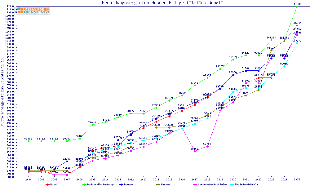 | Besoldungsvergleich R 1 im Jahr 2025 | gemitteltes Gehalt | ||||||