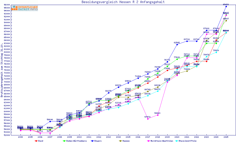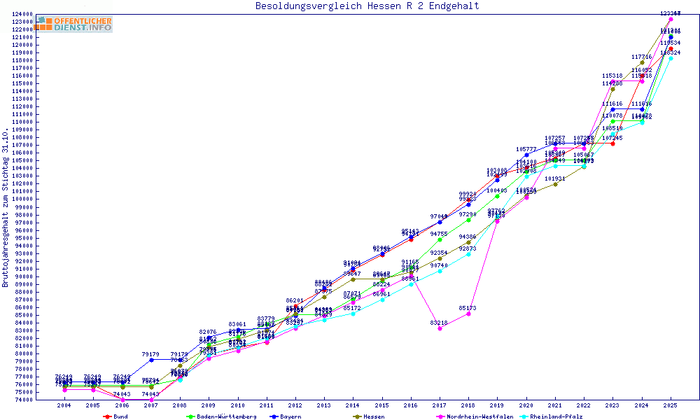 | Besoldungsvergleich R 2 im Jahr 2025 | Anfangsgehalt | ||||||
