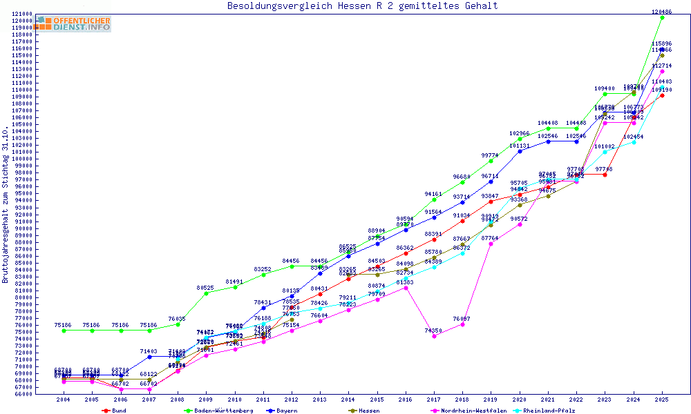 | Besoldungsvergleich R 2 im Jahr 2025 | gemitteltes Gehalt | ||||||