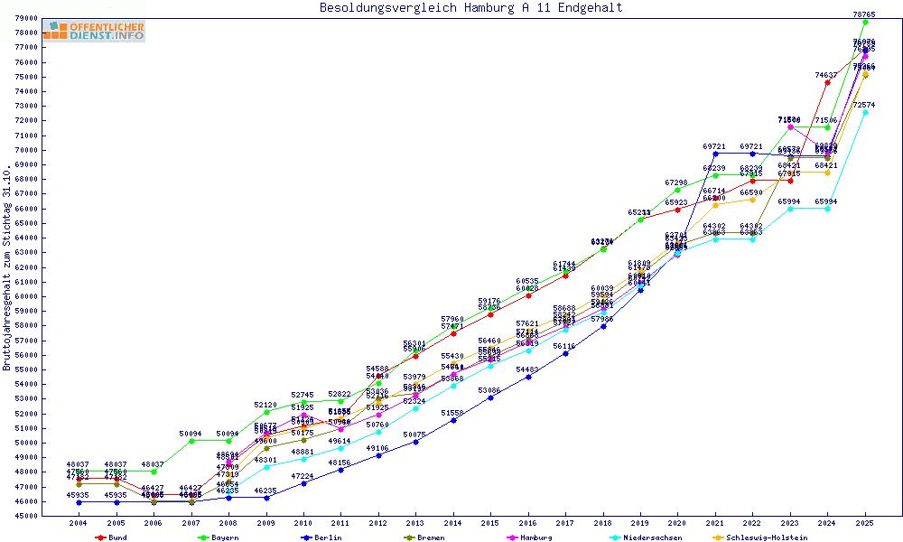 | Besoldungsvergleich A 11 im Jahr 2025 | gemitteltes Gehalt | ||||||